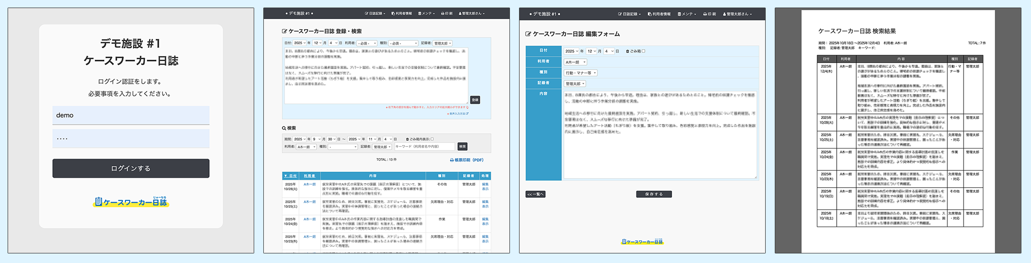 ケースワーカー日誌 画面サンプル